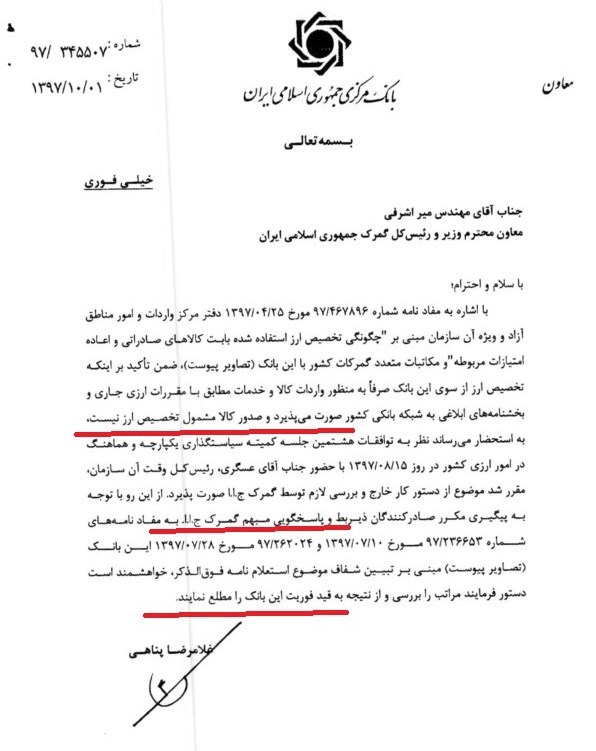 مدیرکل دفتر واردات گمرک ایران در بخشنامه ای به گمرکات اجرایی با اشاره به بخشنامه معاون ارزی بانک مرکزی در تاریخ یک بهمن ماه، مبنی بر عدم شمول تخصیص ارز برای صدر کالا و انجام عملیات ارز صرفا به منظور واردات کالا و خدمات، تأکید کرد، موضوع استعلام در خصوص چگونگی تخصیص ارز استفاده شده بابت تولید کالای صادراتی در زمان وازدات کالای صادرات برگشتی منتفی است.