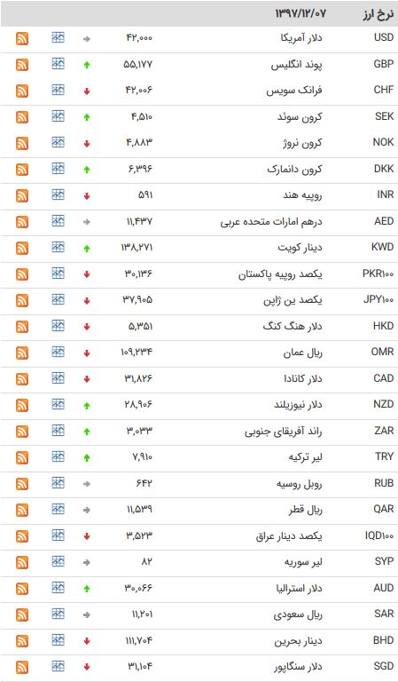 آخرین نرخ ۴۷ ارز بین بانکی در هفتم اسفند ۹۷