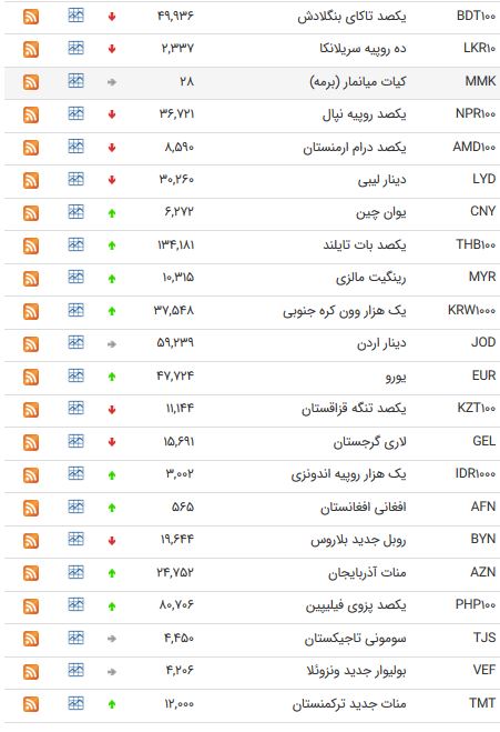 بانک مرکزی امروز نرخ ۴۷ ارز عمده در برابر ریال را اعلام کرد که بر این اساس نرخ ۱۰ ارز ثابت ماند، ۱۸ ارز افزایش و ۱۹ ارز کاهش یافت.