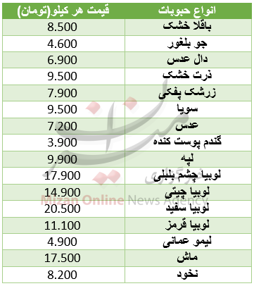 برای خرید انواع حبوبات در میادین میوه و تره بار باید از کیلویی ۴ هزار تا ۲۰ هزار تومان هزینه کرد.
