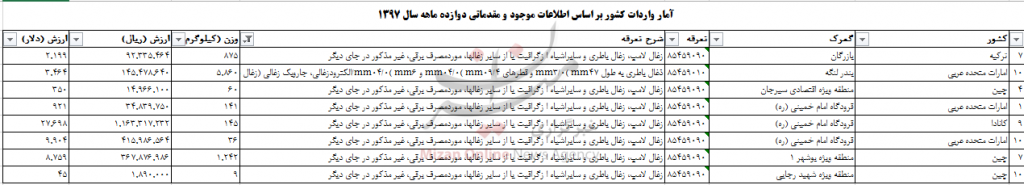 واردات ۸ تن واردات زغال باطری و سایراشیا از گرافیت یا از سایر زغالها، مورد مصرف برقی، غیر مذکور در جای دیگر باعث خروج ۵۳ هزار و ۳۴۰ دلار یا به عبارتی ۲ میلیارد و ۲۳۶ میلیون و ۶۹۰ هزار و ۳۶ ریال شده است.