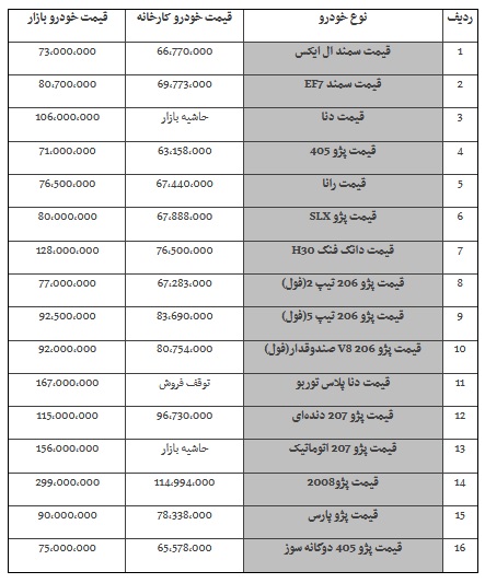 در بازار امروز خرید و فروش خودرو پژو ۴۰۵ با نرخ ۷۱ میلیون تومان و پژو۲۰۶ صندوق دار با نرخ ۹۲ میلیون تومان مورد معامله قرار گرفت.