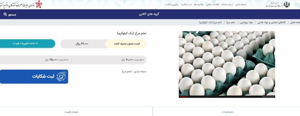 نرخ مصرفکننده هر کیلوگرم تخممرغ بر اساس اعلام سازمان حمایت مصرفکنندگان و تولیدکنندگان ۷۹۰۰ تومان است؛ وزن هر شانه ۳۰ عددی تخممرغ ۱.۵ تا ۲ کیلوگرم است.