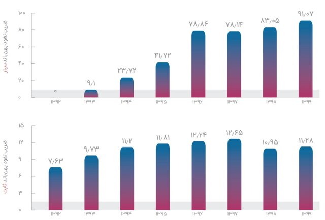 بر همین اساس ضریبنفوذ پهنباند ثابت از ۷.۶۳ درصد در سال ۱۳۹۲ به ۱۱.۲۸ درصد در سال جاری و ضریبنفوذ پهنباند سیار از صفر درصد در سال ۱۳۹۲ به ۹۱.۰۷ درصد در سال ۱۳۹۹ رسیده است.