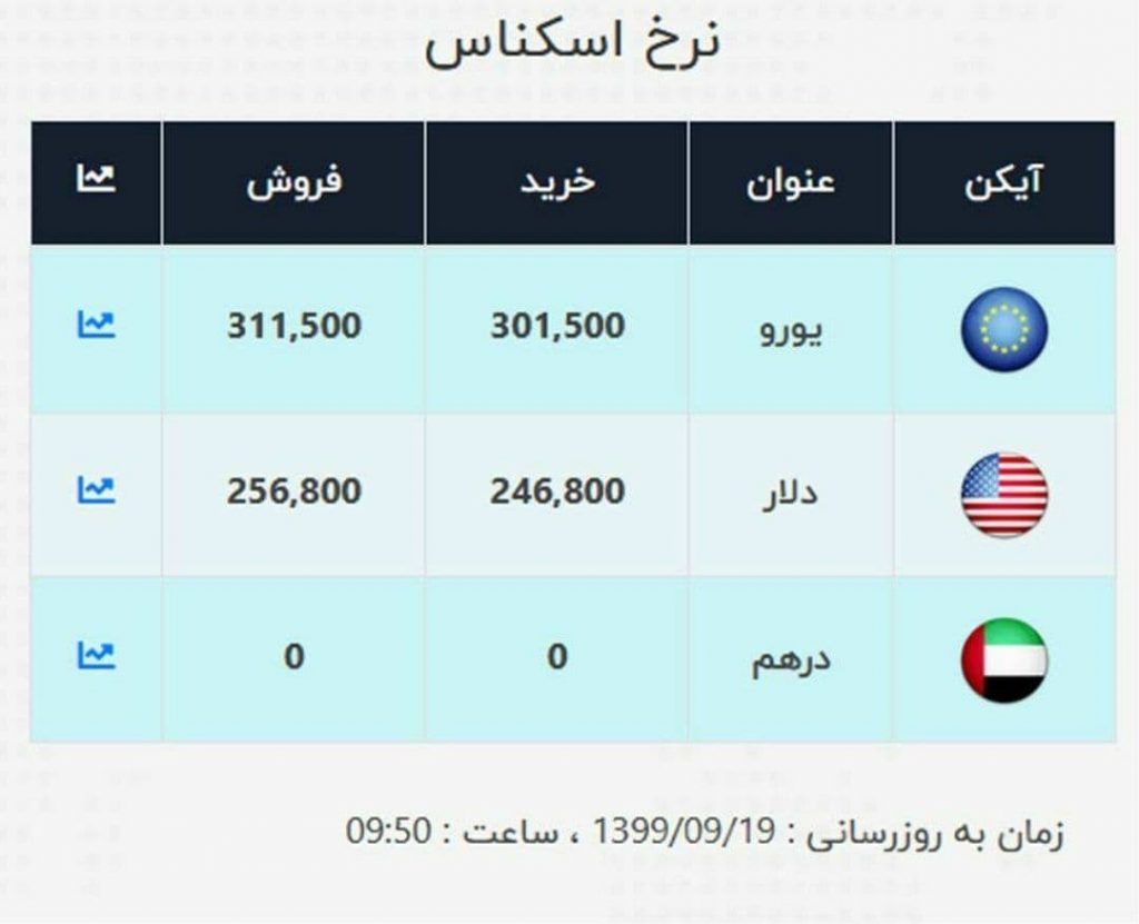 همچنین یوروبا قیمت ۳۰۱هزار و ۵۰۰ ریال خرید و با قیمت ۳۱۱۵۰۰ ریال فروخته میشود