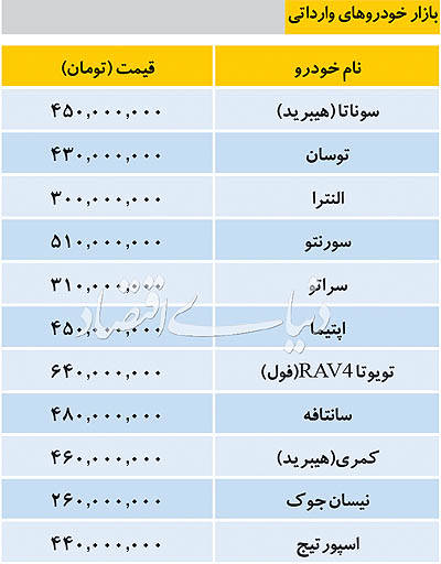 قیمت روز خودروهای وارداتی در بازار