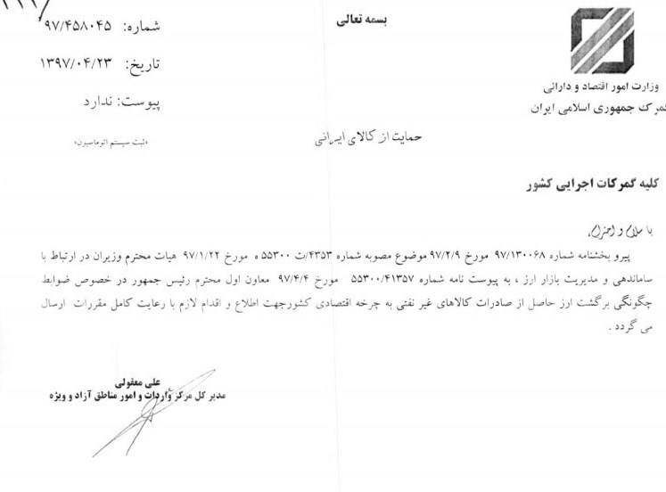 ابلاغ مصوبه ارزی منقضی شده توسط گمرک ایران + سند